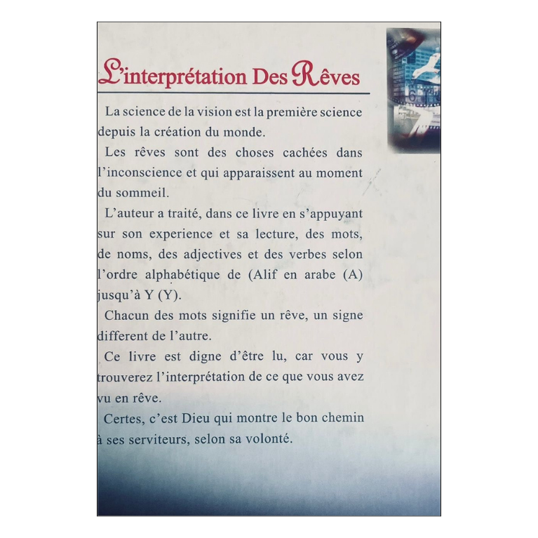 Ce livre est digne d’être lu, car vous y trouverez l’interprétation de ce que vous avez vu en rêve.