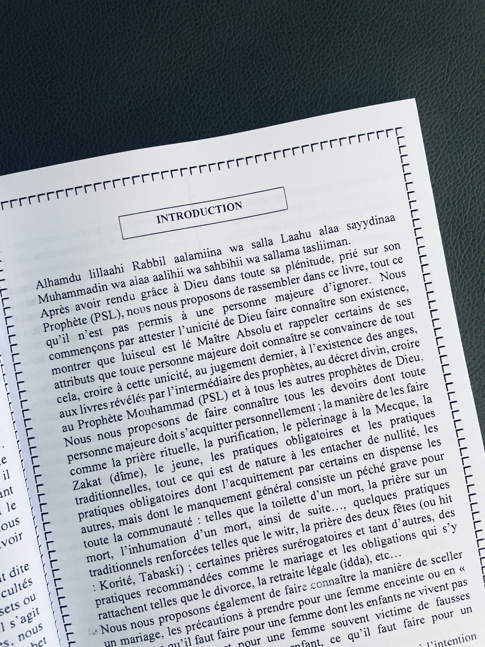 “Le « Cordon des joyaux précieux, dans l’expression de l’histoire des secrets » est une suite de récits hagiographiques, de sentences d’exhortations et de sagesses profondes, articulée en deux grandes parties : – L’une est relative à la vie d’ici-bas ; – L’autre traite des aspects relatifs à l’au-delà. Traduction de l’Arabe au Fran,çais par Serigne Sam Mbaye.”
